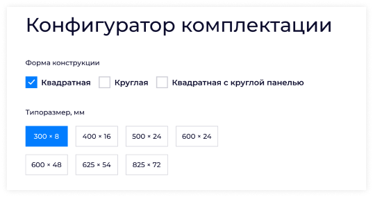 Запрос можно сформировать с точностью до всех необходимых опций прямо на сайте, выбрав одну или несколько товарных позиций, или через нашего специалиста по работе с клиентами.